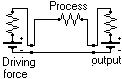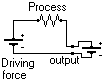 To view such ambiguities, it's interesting to use an electrical analogy. You'd have a driving force as an input, resistors and/or "current sources" as processes, and an output: