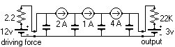 But there's another way to double the output current. You could increase the driving force to 21 volts. Note however, that reducing the output's backpressure even to zero would nowhere near double the output current. This seems to typify many bottleneck situations, where there's one driving force bottleneck, and one force consumer bottleneck, either of which can increase performance. Note the following: