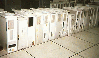 We pile into their brand new Mustang and drive to my house. The kid with the computer spends the trip talking on his cellphone. Once in the house I lead them to a small room containing a hodgepodge of fifty 486's, Ethernet wired in parallel, with Red Hat Linux running each one. A T3 has replaced the T1 that replaced the ISDN that replaced the dialup I had when I first built the system out of four junkyard 486's.